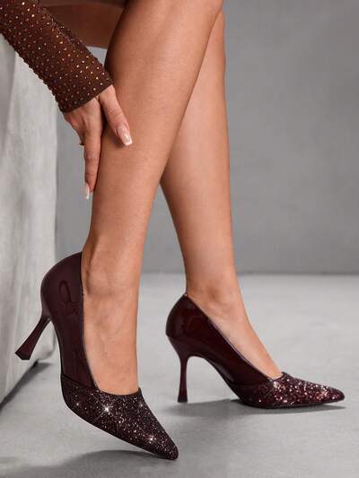 CUCCOO SZL Zapatos de mujer de tacón de aguja marrón con efecto espejo brillante, zapatos de tacón alto sencillos, elegantes y sexys para fiestas y banquetes