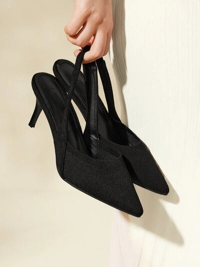 CUCCOO CHICEST Zapatos de mujer de tacón alto y puntiagudo, de malla negra simple, con correa trasera. Zapatos de correa trasera para mujer, elegantes y sensuales, ideales para fiestas y banquetes.