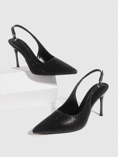 CUCCOO SZL Zapatos de mujer de tacón fino y puntiagudo, con brillantes negros, elegantes y sexys para fiestas, banquetes, clubes nocturnos y eventos