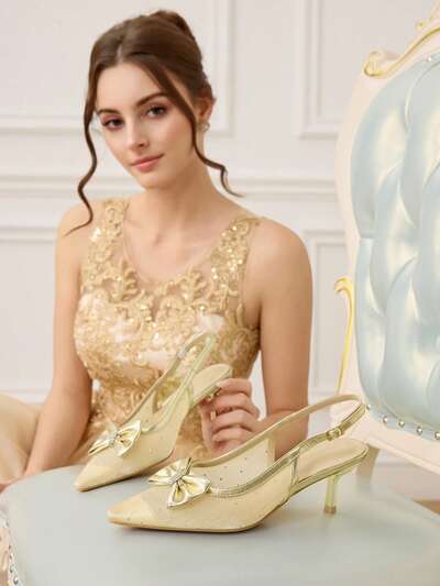 CUCCOO BIZCHIC Zapatos de tacón alto elegantes con decoración de lazo y punta puntiaguda para mujer
