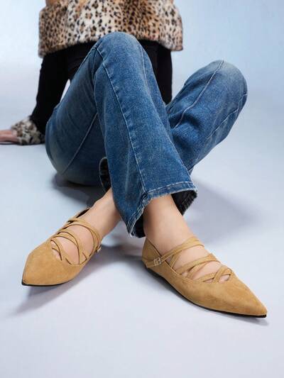 CUCCOO CHICEST Zapatos de tacón alto de punta afilada de ante color albaricoque para mujer, sandalias con tira y tacón fino caladas, elegantes y versátiles para fiesta, Navidad, Año Nuevo, Día de San Valentín