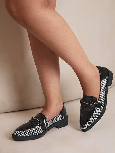 CUCCOO CURVES Zapatos de plataforma gruesa de ajuste ancho talla grande, mocasines de punta puntiaguda de unicolor con empeine alto, decoración con hebilla de estilo británico casual para mujer, para usar en todas las estaciones