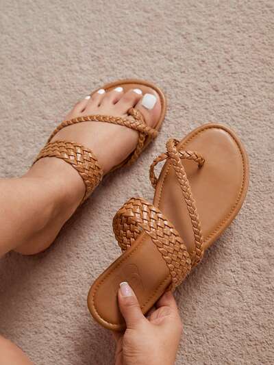 CUCCOO CURVES Sandalias de estilo bohemio tejidas planas para mujer, de ajuste ancho, aptas para playa, resort y uso diario