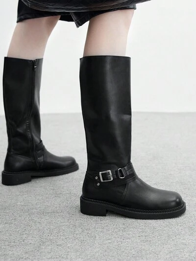 CUCCOO CHICEST Botas altas casuales de uso diario para mujer con diseño de hebilla de color contrastante