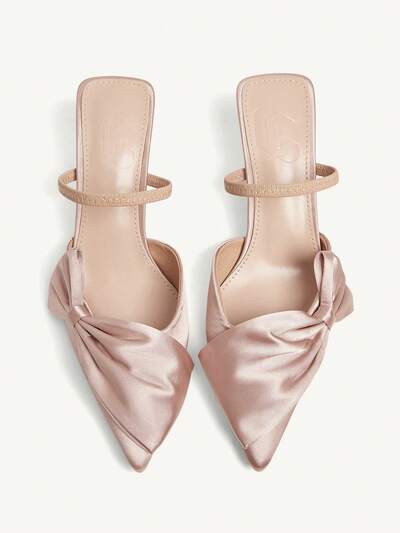 CUCCOO CHICEST Sandalias de tacón de aguja con lazo decorativo y tira trasera para mujer, elegantes zapatos de tacón alto de color rosa de moda
