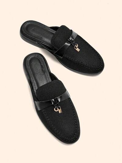 CUCCOO BASICS Zapatos planos tipo mula de slip-on negros de punto, de moda casual, versátiles y cómodos para el uso diario