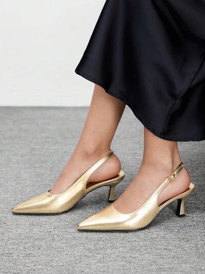CUCCOO BIZCHIC Tacones altos de punta fina elegantes y sexys para mujer color dorado