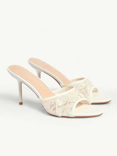 CUCCOO CHICEST Zapatos de mujer para primavera y verano con adorno de encaje en forma de rosa, de punta abierta, tacón de aguja de 8.5 cm, unicolor, sandalias de tacón alto para mujer, elegantes para uso diario, citas, fiestas y bodas