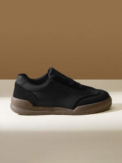 CUCCOO EASI Baskets de gym décontractées pour femmes, de couleur unie contrastée et style preppy. Chaussures plates décontractées à lacets en patchwork marron. Chaussures de sport de mode rétro pour l'extérieur et la course