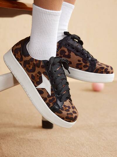 CUCCOO EASI Chaussures de sport et décontractées à imprimé léopard avec lacets pour femmes