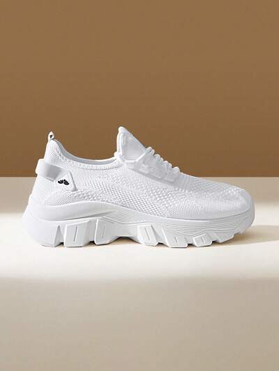 CUCCOO EASI Baskets épaisses en maille blanche, baskets décontractées à semelle épaisse et respirante, chaussures polyvalentes pour femmes pour le printemps et l'été, chaussures pour les courses et les déplacements quotidiens