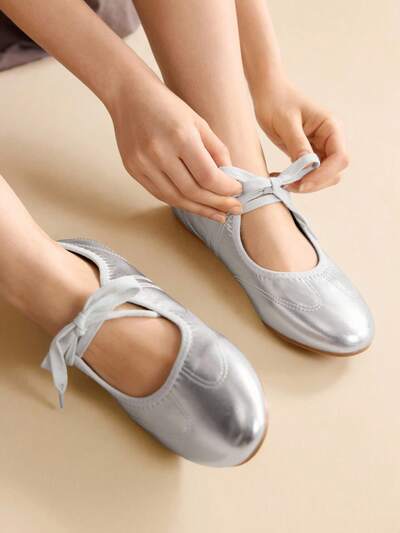 CUCCOO EASI Ballerines femme à lacets de couleur métallique argent, à la mode et confortables