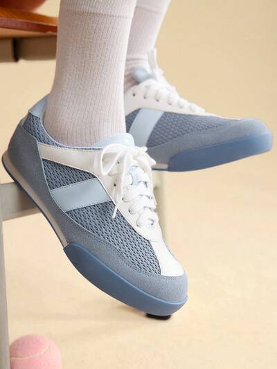 CUCCOO EASI Chaussures de sport casual à bout rond en maille avec insert pour femme, design simple en PU contrasté confortable pour un porter quotidien et extérieur