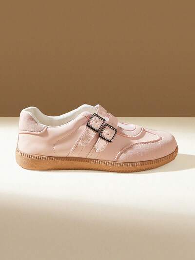 CUCCOO EASI Chaussures de formation morale à bout rond à double boucle rose clair pour femmes, talon plat antidérapant à semelle souple, design rétro Mary Jane, pour le travail, les courses et la conduite, chaussures décontractées