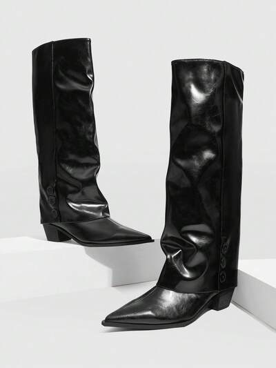Chaussures De Femme Mode Pointe Toe Genou-haute épais Talons Bottes Noires