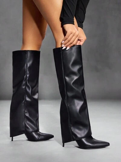 CUCCOO SZL Bottes hautes à pointe effilée et talon aiguille Cuoocc avec embout métallique et fermeture éclair latérale. Bottes hautes polyvalentes au design androgyne, convenant pour les sorties, la vie nocturne et le style de rue, pour les femmes-27%