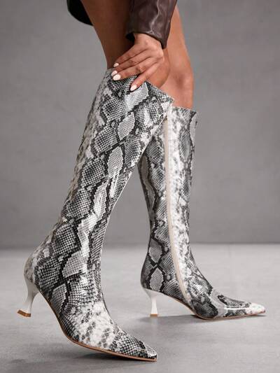 CUCCOO SZL Bottes hautes à talon aiguille pour femmes, à bout pointu, motif peau de serpent, minimaliste, élégantes et polyvalentes avec fermeture éclair latérale, pour Noël-71%