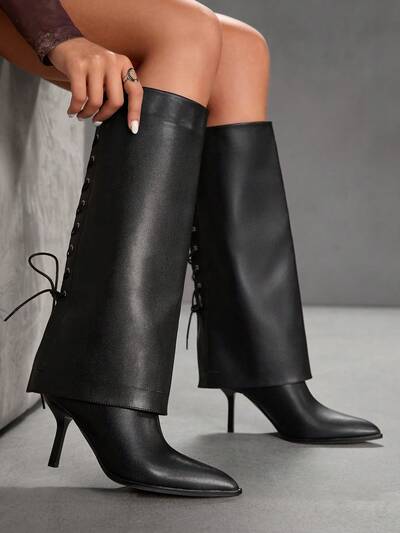 CUCCOO SZL Bottes hautes sexy polyvalentes à bout pointu de couleur unie pour femmes