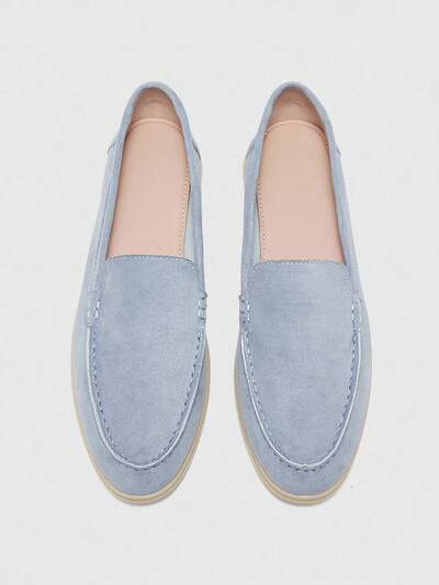 CUCCOO BIZCHIC Women's Fashionable Blue Suede Comfortable Casual Loafers, Suitable For Commuting, Outdoor, Shopping, Work, Daily Wear For Christmas Spring Shoes