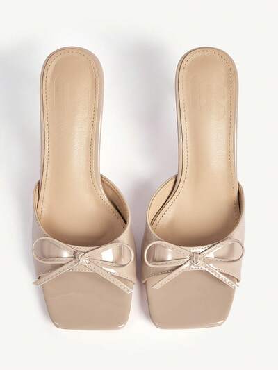 CUCCOO CHICEST Women Shoes Autumn Square Toe High Heel Sandals Women's Bow Accessories Attendance Wear Slip-On Stiletto Sandals Wedding Shoes Summer Shoes Bride Shoes