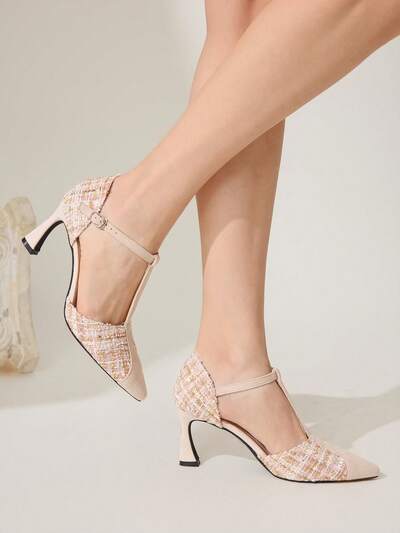 CUCCOO LuxiPop Women Shoes Outdoor Women's Pointed Thick High Heel Double-Layer Waterproof Table Satin Fabric Stylish, Simple And Comfortable Buckle For Daily Parties And Banquets Dew Heel Solid Color Shoes 2000s Style