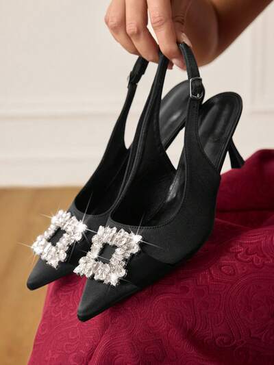 CUCCOO HITCHD Women's Spring/Summer New Rhinestone Stiletto High Heels, Romantic Elegant Black Satin Formal Dress Shoes, Graceful High Heel Sandals For Valentine's Day Elegant Shoes Wedding Shoes