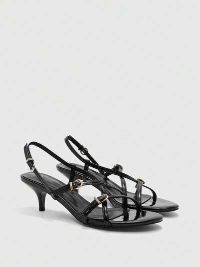 CUCCOO BIZCHIC Black Pointed Toe Metal Buckle Stiletto Heels, Minimalist European & American Style Genuine Leather Backless High Heels, Niche Design Sense Fashion Shoes, Blogger Same Style Office Commute Women's Shoes, High-End Dark Vibe Closed Toe Shoes, Luxurious Metal Decor Pointed Toe Shoes, French Retro Black High Heels Valentine's Day