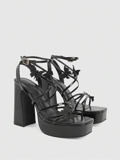 CUCCOO LuxiPop Sandálias de Salto Alto Femininas com Esquema de Cores em PU Dourado, Decoração de Borboleta, Tira Fina, Moda Sexy e Deslumbrante, Salto Grosso e Plataforma-61%