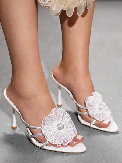 CUCCOO SZL Sapatos Femininos Salto Agulha Pontudo Branco com Tiras de Strass e Flores Tridimensionais, Sandálias Abertas Sexy e Elegantes para Usar com Saias em Banquetes, Festas e Boates, Salto Alto para Senhoras-14%