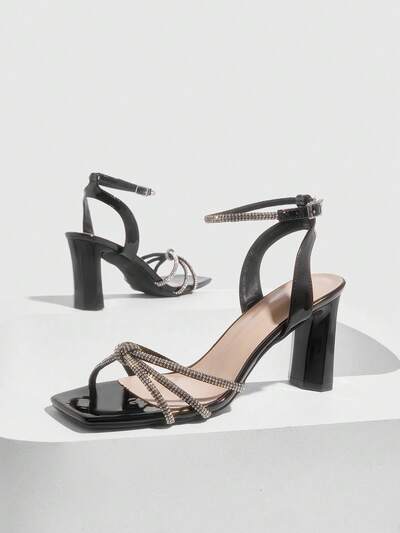 CUCCOO SZL Sandálias de Salto Alto Peep-Toe de Estilo Francês Semiaberta com Brilhantes Europeu e Americano, Modelo de Moda, Salto Grosso, Estilo Sexy de Festa Baddie Chic e Deslumbrante para Halloween-14%
