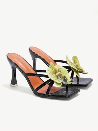 CUCCOO CHICEST Sandálias de Salto Alto Sexy com Decoração Floral 3D, Adequadas para Eventos e Festas