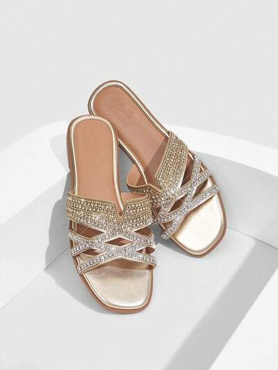 CUCCOO TILAWA Chinelo Casual de Festa com Decore de Cristal de Gradiente Brilhante Dourado, Sandália para Sapatos de Férias de Verão de Verão Natal Outono Ano Novo Feriado