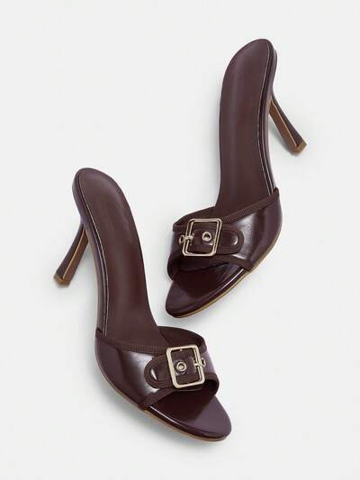 CUCCOO BIZCHIC Sapatos Femininos Novos para Primavera e Verão, Sandálias de Salto Alto Peep Toe com Fivela de Metal Marrom, Chinelos Versáteis e Confortáveis para Uso Diário-25%