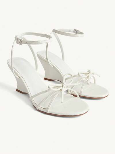 CUCCOO CHICEST Sandálias Anabela com Tiras Finas de Design de Contas Brancas DIY para Uso Diário-61%